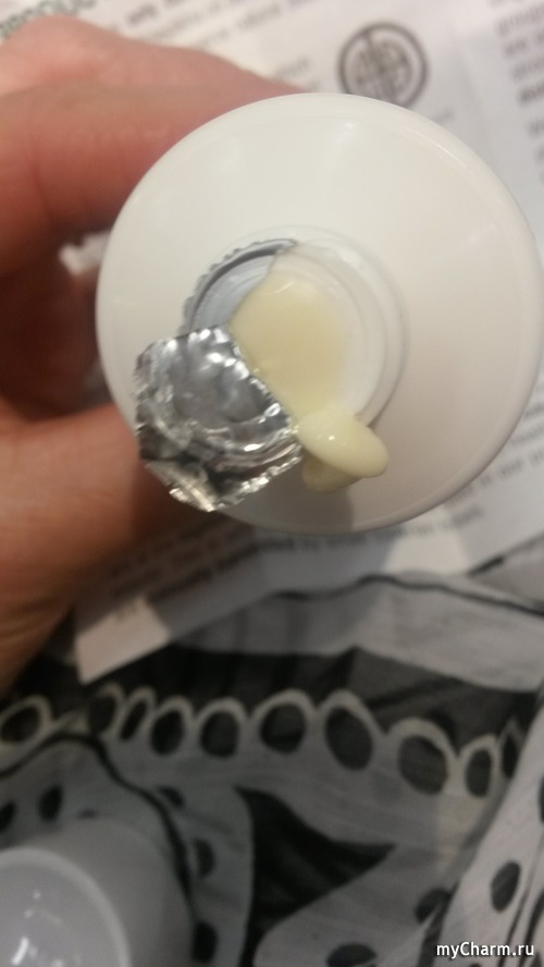 Белая, откручивающаяся крышечка, носик тюбика надежно защищен тонкой фольгой.