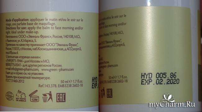 На коробочке содержится информация о действии продукта на кожу, способе применения, составе бальзама. Кстати говоря, компоненты средства радуют своей натуральностью, за что производителю отдельная "звёздочка"!