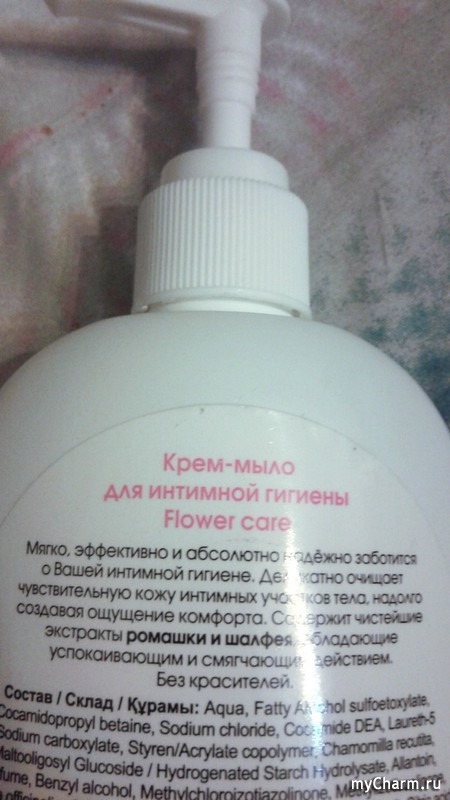 В настоящий момент я пользуюсь крем-мылом для интимной гигиены с чистыми экстрактами шалфея и ромашки Intimed flover care.