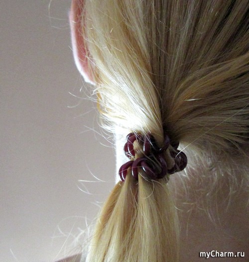 Такой эффект достигается из-за многообразия резинок: можно подобрать цвет так, чтобы резинка практически «растворилась» в волосах, а можно, наоборот, выделить ее присутствие ярким цветом.