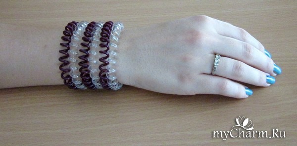 Уход за спиральными резинками очень простой: мыть можно отдельно в мыльной теплой воде или еще проще - во время мытья головы наденьте на руку как браслет.