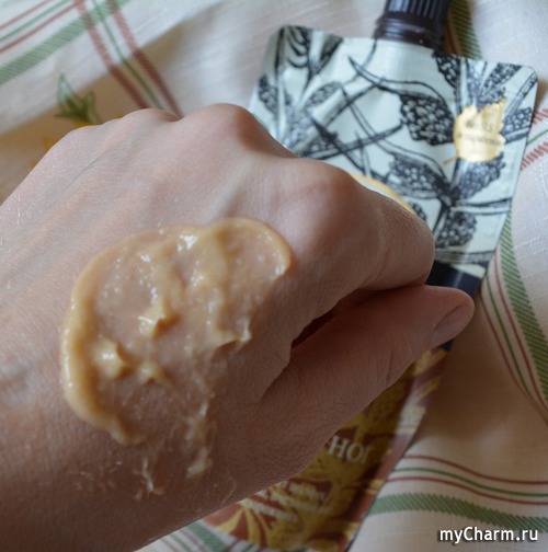 Консистенция пилинга кремообразная, желтоватого оттенка. В средстве имеются частички, но жесткими я бы их не назвала. Они лишь слегка царапают кожу.