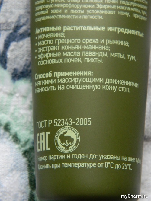 В кожу впитывается не сразу – пяточки и стопы нужно хорошенько помассировать, прежде чем кожа вберёт в себя средство. Ощущения во время процедуры весьма приятные – массаж стоп хорош сам по себе, а уж вкупе с ароматным средством – просто мечта!