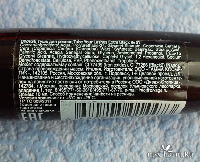 Теперь давайте, проверим, так ли хороша эта тушь для ресниц. Покрутив тушь в руках я нашла следующую информацию: