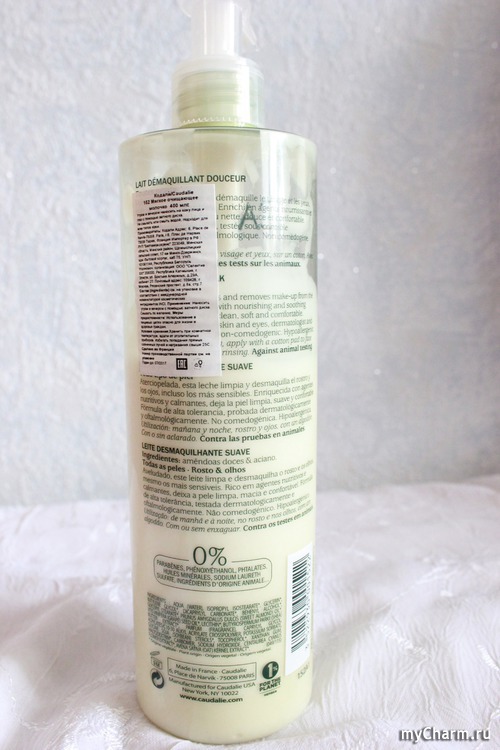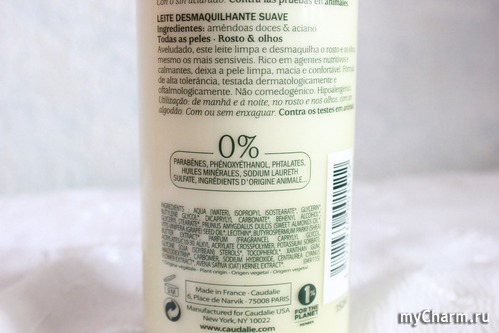 Французская марка косметики Caudalie всегда славилась своей натуральностью и отсутствием вредных компонентов в составе. Говорят, что сами французы просто ее обожают, если судить по данным из различных интернет-ресурсов. Ни в одном из средств данного бренда вы не найдете парабенов, SLS, SLES, минеральных масел, фталатов, продуктов животного происхождения. Зато масло косточек винограда и другие производные винограда присутствуют практически в каждом продукте. И "Мягкое очищающее молочко" тому не исключение.