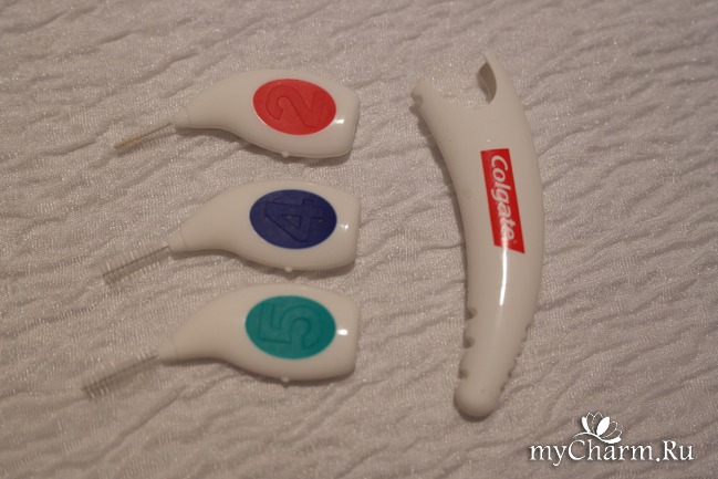 Недавно была у стоматолога. Запломбировали зубик. Я спросила у врача, как уменьшить стираемость эмали. Еще меня беспокоил вопрос кровоточивости десен и темного налета. Врач оказался внимательным и рекомендовал определенную зубную пасту. И еще он посоветовал начать пользоваться зубными ершиками. Оказывается, для качественного ухода за полостью рта недостаточно зубной щетки и пасты. Даже самая модная щетка не способна проникнуть между зубами на достаточную глубину. Зубочистки опасны, а зубные нитями нельзя удалить налет в некоторых труднодоступных участках. Сразу после лечения я зашла в аптеку. На стенде висели упаковки с ершиками разных марок. Они отличаются цветом, формой, длинной. Купила вот такой набор ершиков от Колгейт.