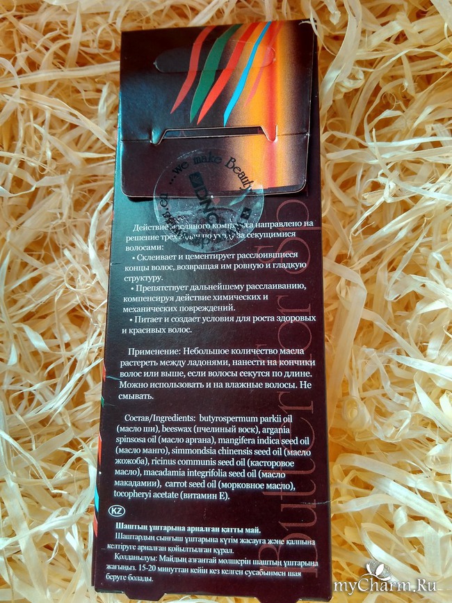 Компоненты масла подобраны просто идеально! Масла в составе средства (арганы, ши, касторовое и т. д) на протяжении веков используются прекрасной половиной человечества для восстановления, укрепления и поддержания здоровья волос. Среди всего значится и витамин Е: он способствует питанию и увлажнению волос, защищает волосы от вредных факторов окружающей среды. И ни одного консерванта! ДНЦ всегда восхищает своим составом, что и говорить!
