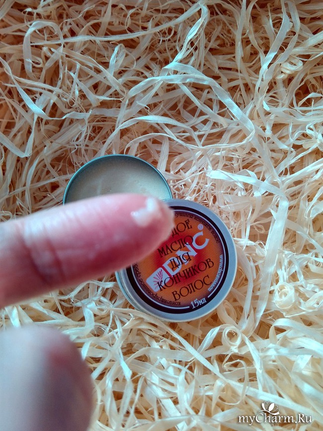 Здесь приведено описание качеств твердого масла. Оно должно склеивать секущиеся кончики волос, препятствовать их дальнейшему сечению, помочь в росте красивых и здоровых волос.