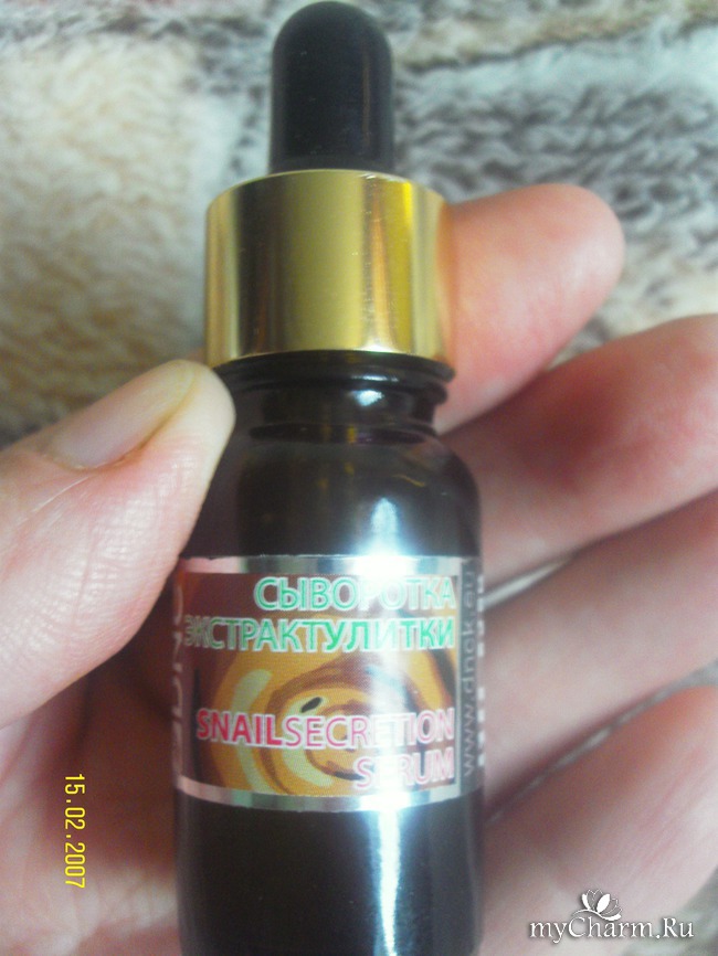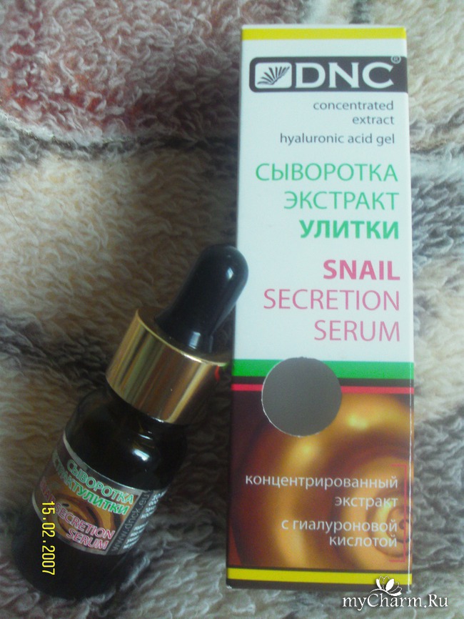 Внешний вид, обещания производителя. Объем сыворотки всего лишь 10 мл. На один курс применения, который длится примерно две-три недели, этого количества вполне хватает, чтобы оценить обещанный эффект. Сыворотка оснащена удобной пипеткой-дозатором, который позволяет минимизировать потери драгоценной жидкости в ходе применения. Средство заключено во флакон из темного стекла, чтобы содержимое не подвергалось действию прямых солнечных лучей. Флакон был запакован в картонную коробочку, на которой со всех сторон находится подробная информация о действии, способе применения сыворотки и ее составе. Дизайн упаковки выдержан в классическом стиле компании ДНЦ. Оказывается, при производстве ни одной улиточки не пострадало, вот здорово!