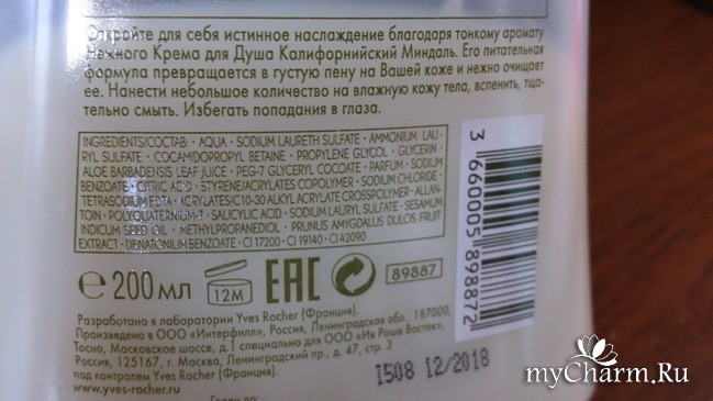 • За аромат. Все гели из серии «Сады мира» пахнут превосходно, по крайней мере мне очень нравятся. Разве что кроме слишком сильного для меня аромата кофейного геля. Нежность аромата, легкая вуаль вокруг после душа – вот, за что я люблю Ив Роше в целом и полюбила «Калифорнийский миндаль» в частности. Правда, в случае с этим гелем, аромат на любителя – он не столь нейтральный, как «Лотос» или «Хлопок» из этой серии: скорее с небольшой горчинкой, свойственной миндалю. Мне кажется, он понравится тем, кто утомился от сладких приторных ароматов. Также мне очень нравится использовать его в жаркое время: фисташковый цвет и аромат с горчинкой действует на меня охлаждающе))) Сладкие запахи в жару – это не для меня.
