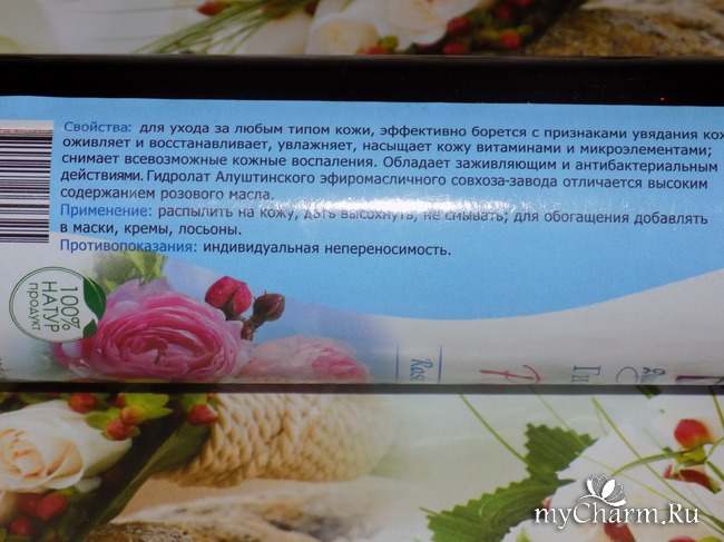 Немного об истории существования и производстве завода я рассказала как раз таки в предыдущем обзоре. Также напомню о том, что гидролаты завода – это продукты дистилляции растений, цветов, выращенных и собранных на плантациях Алуштинского эфиромасличного совхоза-завода. В данном случае это гидролат цветков розы.
