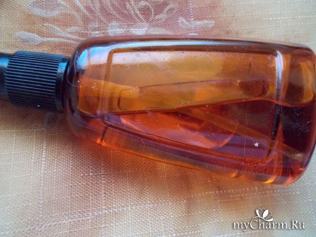 Сам флакончик из темно-коричневого пластика в форме груши, где плечики флакона узкие, а низ, то есть донышко шире. После того, как масло закончилось, флакончик хранит в себе другое масло, которым я с удовольствием пользуюсь во благо моей коже.