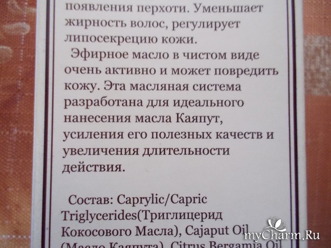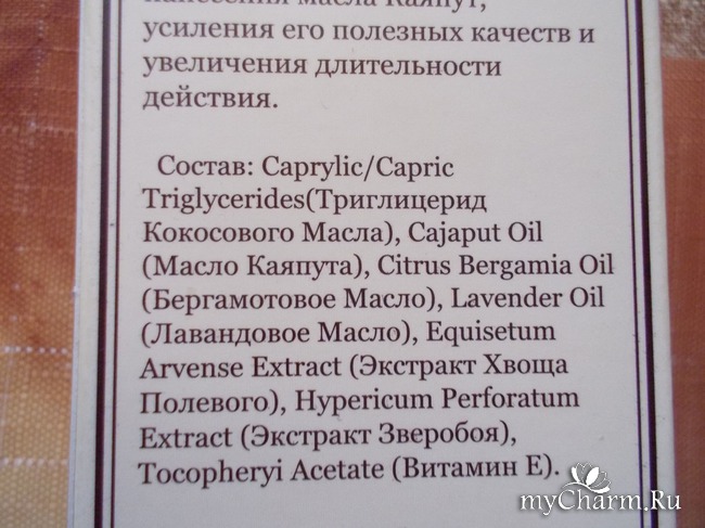 Первый раз пользуюсь этим замечательным продуктом: масляной системой, в которой выступает главный герой-масло каяпута. Как я называю эту процедуру: пошла себя каяпутить.