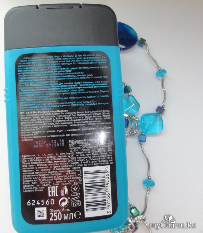 У этого средства нейтральный рН для кожи, так утверждает производитель, значит, можно не бояться за кожный защитный барьер. Моющая основа, используемая для этого геля-шампуня, растительного происхождения и биоразлагаема. Это момент меня тоже очень порадовал!