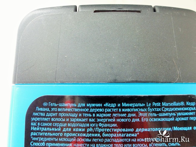 Что касается аромата геля-шампуня, то – да, он именно мужской! Немного резковат и в то же время свежий. Присутствуют ноты кедрового эфирного масла – терпкого, смолистого и горьковатого. Но в целом, аромат очень приятный и притягивает к себе. На волосах остается довольно долго, мужчине можно даже не использовать туалетную воду.
