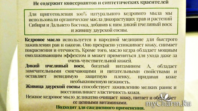 myCharm.Ru Кедровое мыло для питания и защиты кожи!