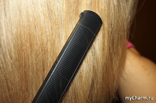 Я же отдам предпочтение другому способу: нанесение на почти сухие волосы и обработку локонов электрическим утюжком. Локоны выравниваются, становятся гладкими и красивыми, усиливается блеск. Прическа становится аккуратной и ухоженной. Даже при повышенной влажности на улице волосы не распушились, что очень порадовало.
