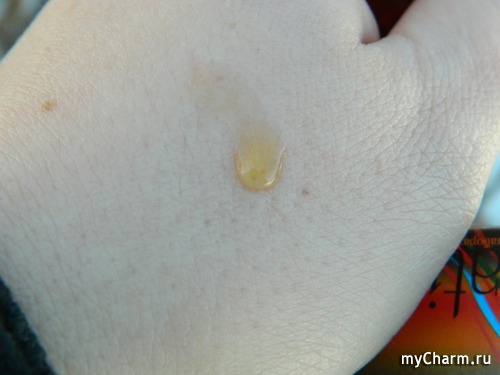 Оно представляет собой желтовато-коричневатую жидкость без какого-либо запаха (в крайнем случае, я ничего не унюхала). На ощупь жидкость немного скользит, подобно гелю.