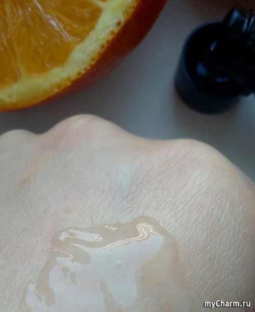 Я для этого бью флаконом по тыльной стороне ладони. За несколько таких манипуляций получаю необходимое количество продукта. Он имеет слегка кисловатый запах.