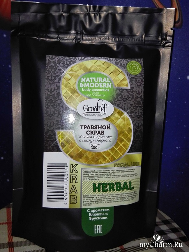Интересный продукт бренда Grosheff оказался у меня в руках – это травяной скраб «Клюква и брусника с маслом Лесного Ореха».
