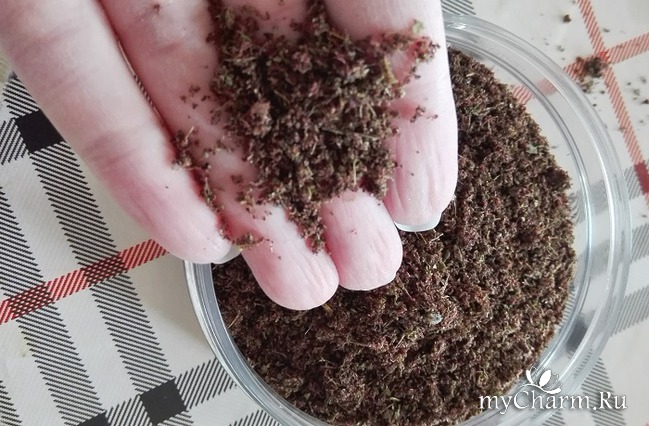 Ещё другим способом я воспользовалась, в горсть этой волшебной травки добавила немного геля для душа, размешала хорошо.