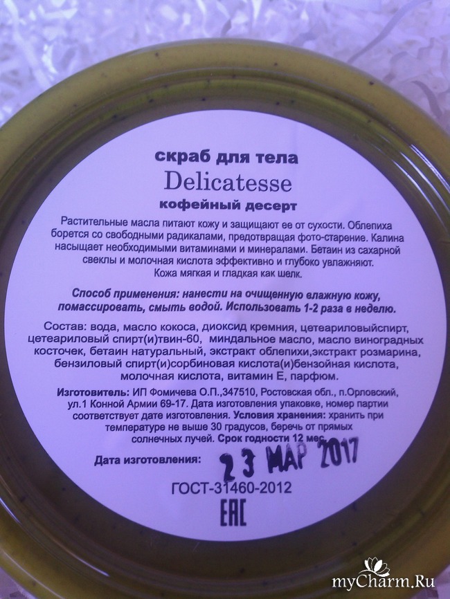 Теперь познакомимся поближе со скрабом для тела «Кофейный десерт».