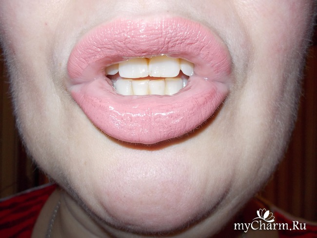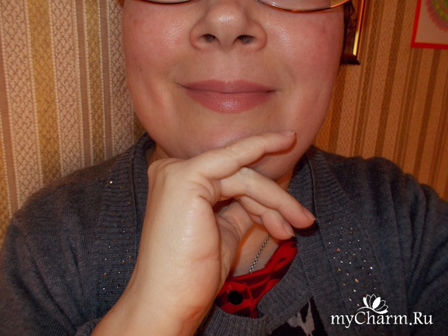 Помада прошла экзамен на стойкость. Она продержалась на коже губ до обеда, а именно шесть часов. Выдержала два чаепития и перекуса. При первом испытании она удержалась на губах, и корректировать красоту губ не пришлось. После второго перекуса помада слегка сошла со своего места. Можно было бы оставить её для лёгкого блеска, а кто любит ярче, то чуть добавить цвета новым мазком. Я оставила «джокондовскую» загадку, то есть размазала остатки помады по губам, и они таинственно замерцали.
