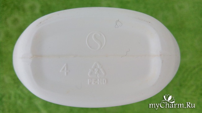 Сделан он из полиэтилена высокой плотности, о чем сообщает значок на дне флакона. Это наиболее безопасный вид пластика.