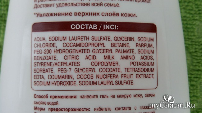 Производитель уверяет, что с помощью молочка и экстракта кокоса гель будет увлажнять верхние слои кожи, разглаживать ее и придавать ей тонкий аромат.