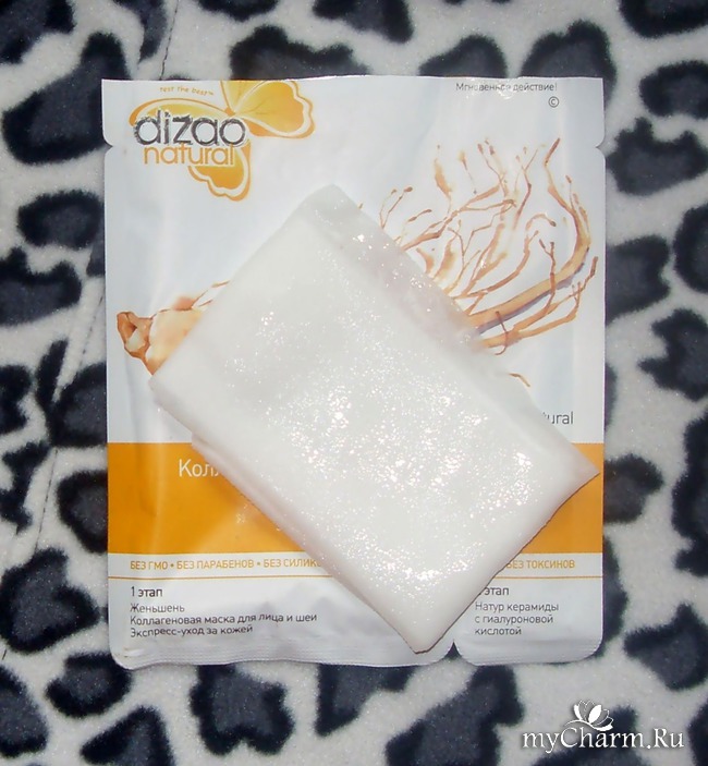 А вот присутствуют в маске очень хорошие вещества. На лицевую сторону саше маски вынесены растительный коллаген и гиалуроновая кислота.