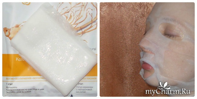 Перед нанесением коллагеновой маски для лица и шеи нужно предварительно очистить кожу. После аккуратно достать тканевую основу из саше и распределить ее по всей поверхности кожи лица и шеи.