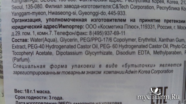 Так же на стикере написано подробное описание маски, способ применения, меры предосторожности и условия хранения.