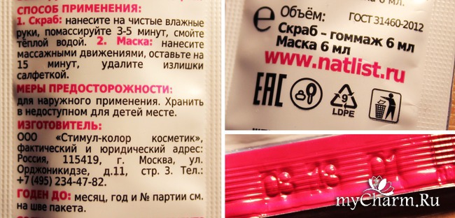 Состав. Отдельно для маски, отдельно для скраба, что очень удобно: