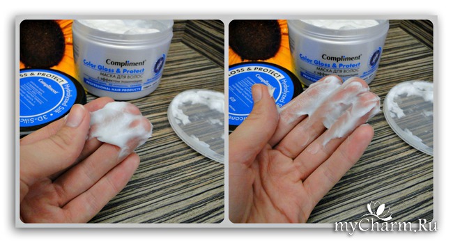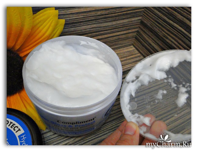 По волосам маска распределяется легко, моментально распутывая и разглаживая волосы. Смывается тоже легко.