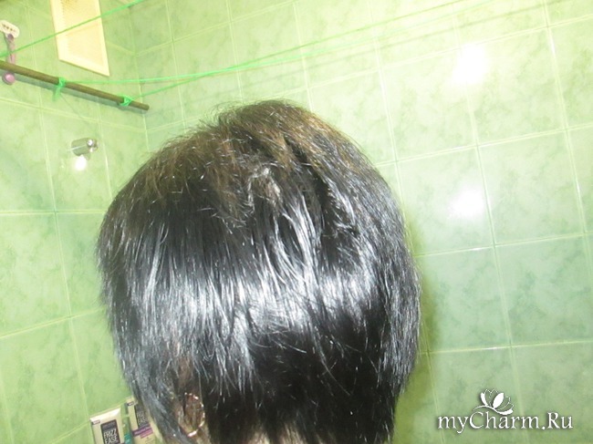 Пакетик, не вскрывая его, нужно нагреть в горячей воде, в мисочке. Хотя можно содержимое вылить в миску, как я сделала один раз, нагреть ее на водяной бане, поставив в другую миску больше объемом с горячей водой. Затем либо из нагретого пакетика, либо из миски нужно теплое содержимое нанести на только что вымытые и слегка подсушенные полотенцем волосы. Нанести нужно на полчаса, не меньше. Иначе эффект будет малозаметен.