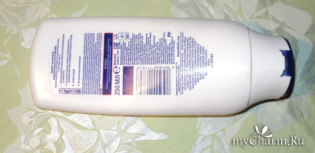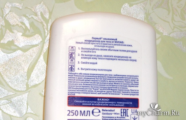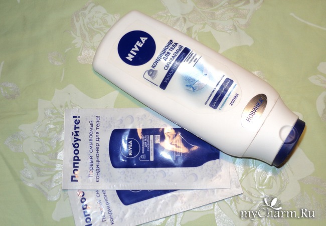 Раньше у меня было несколько пробников этого кондиционера, и в пробниках мне это средство вообще не понравилось! Я не поняла его абсолютно. А вот сейчас, когда у меня появился флакон – все по-другому. Так что, если вы так же, как и я, не восхитились пробником – то не стоит делать поспешные выводы. Во флаконе кондиционер работает очень хорошо.Флакон большой, вместительный, и устойчивый. Стоит на крышке, а крышка большая и круглая. Вообще, мне эти новые упаковки у Nivea понравились. Думала, что буду долго к ним привыкать, а оказалось, что форма стала настолько удобной, что я даже и забыла, какие были упаковки у Nivea раньше.