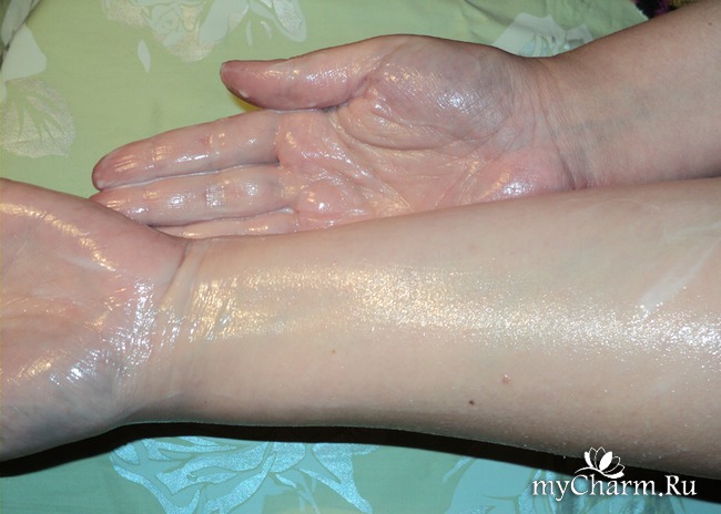 Используется этот кондиционер очень быстро. Дело в том, что состав практически сразу исчезает на влажной коже. Он буквально растворяется на ней. И сколько не возьмешь на ладонь – весь объем можно потратить всего на одно плечо или предплечье. В общем, надо приспосабливаться к этому средству, чтобы понемногу выдавливать на ладонь и наносить на каждый участок тела.Ещё я заметила, что в прохладной воде кондиционер ведет себя совершенно по-другому. Он оставляет липкость и жирность на руках и на теле. Так что, мой совет – применяйте только на разогретую теплой водой кожу и только на мокрую кожу, на сухой он не работает вовсе.