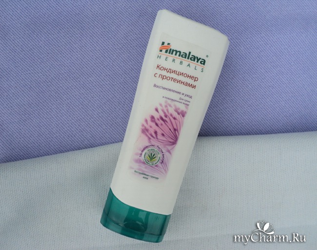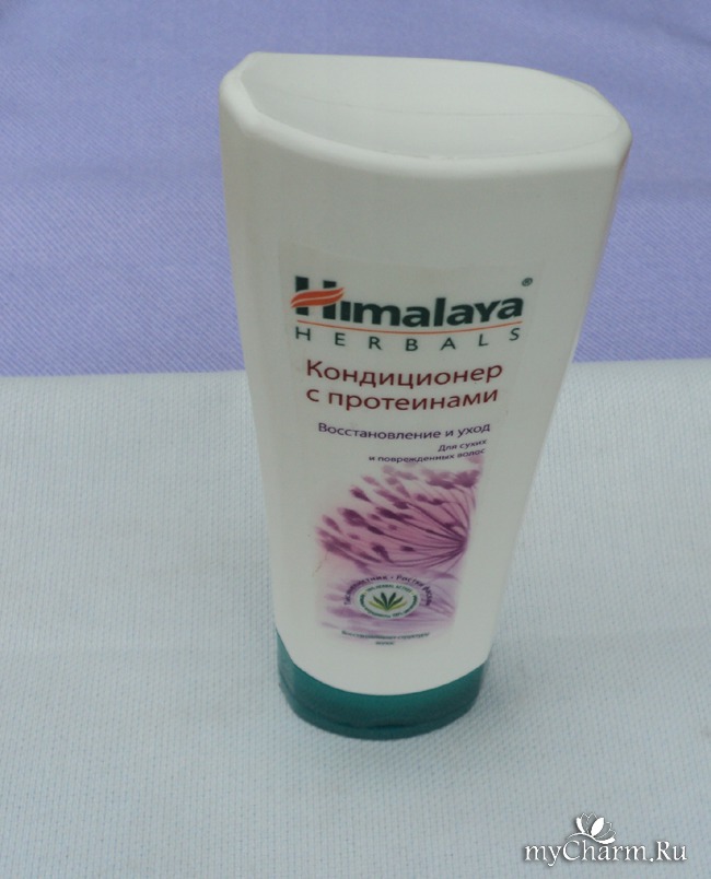 Флакон кондиционера с протеинами от Himalaya Nerbals интересной формы, удобно умещается в руке. И устойчиво хранится крышкой вниз.