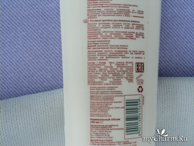 Ростки фасоли и тысячелистник заявлены на упаковке как активные ингредиенты кондиционера. То есть, протеины растительные, из бобовых. Кстати, не только из фасоли, но и из гороха (нут), есть также соевый экстракт.