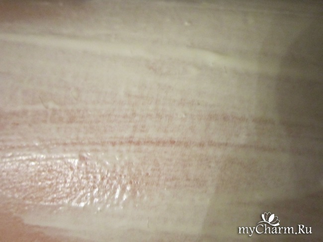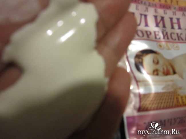После душа нанесла на лицо, зону декольте и в области живота на проблемную зону, эти места обернула пищевой пленкой. Она не стекает, распределять ее равномерно одно удовольствие, легко размазывается. Слегка пощипывает, это совсем не противно, терпимо, быстро проходит. В это время лицо и тело расслабляется, аминокислоты и витамины, которые содержат протеины жемчуга, успокаивает кожу, в общем, корейская глина работает. Когда всё высохло, тут же смыла теплой водой. Очень быстро смывается.