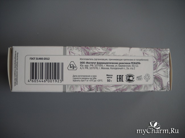 На одной из сторон коробочки мы можем увидеть подробную информацию о производителе со всеми необходимыми контактами, а также рекомендации по хранению ценного продукта – оказывается, он подлежит хранению при температуре от пяти до двадцати пяти градусов.