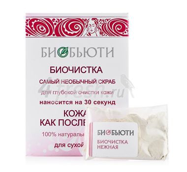Отличие Биочистки от скраба в том, что растирать по коже ее не нужно, только наносить и смывать через минуту. Забегая вперед скажу, что я не сразу заметила это пожелание производителя «НЕ РАСТИРАТЬ». И действовала поначалу средством, как скрабом. Хотя и в этом случае осталась им вполне довольной. Уже далее я действовала так, как было указано на упаковке.
