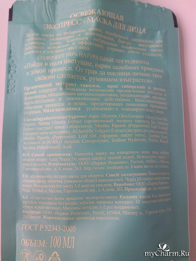 myCharm.Ru Кожа имеет усталый вид? Хочется освежиться? Тогда эта маска для вас!