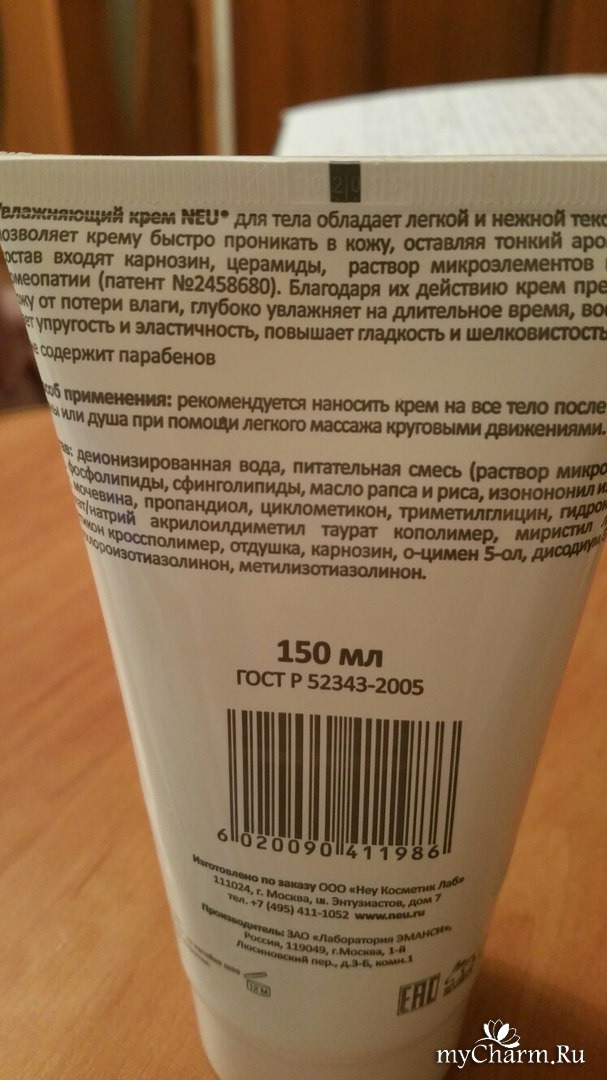 Столь длинное предисловие было для того, чтобы начать мой рассказ про увлажняющий крем для тела NEU от российской компании Neu Kosmetik (#neukosmetik).