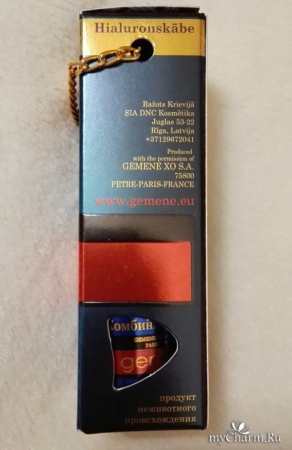 Эта линейка Gemene идет в красивой яркой упаковке. Коробочка вся блестит, переливается, отличительная черта этой линии – золотая цепочка на коробочке.