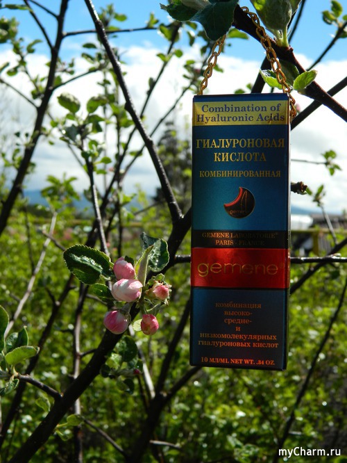 Всё дело в том, что гиалуроновая комбинированная кислота включает в себя соединение крупных и мелких молекул гиалуроновой кислоты. Их действие отличается: крупные молекулы оказывают действие на поверхности кожи: увлажняют, защищают и подтягивают её; мелкие же проникают в глубь и обеспечивают более полное увлажнение. Таким образом, средство оказывает всестороннее влияние на кожу, что создаёт благоприятные условия для продления молодости кожи. Другими словами, средство говорит твёрдо «Нет!» возрастным изменениям и морщинам. Как раз для дам «35 с хвостиком» (хотя в моём случае это огромный хвостище).