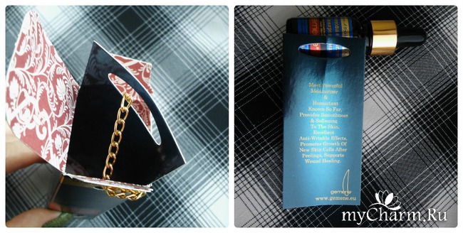 Короче, флакон достали, но остался же вкладыш, на котором я с трудом разглядела наличие какого-то текста, поэтому решено было все же пожертвовать целостностью коробочки и я разорвала ее.