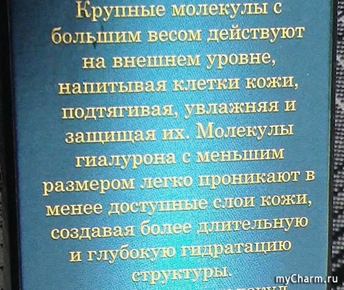 Адрес физический и интернет-адрес производителя, состав и информация о принципах действия гиалуроновой кислоты в принципе и в частности о комбинированной формуле, все это можно прочитать на боковых гранях коробочки.
