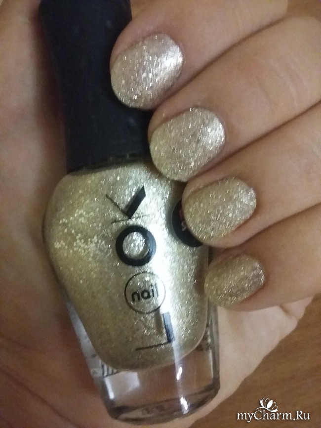 Мне безумно нравится на ногтях лак голографик, и я сбилась с ног в поисках такового, так ничего и не найдя. Но очень уж хотелось, чтобы ноготки сверкали, и мое внимание привлекла стойка с лаками неизвестной мне фирмы - NailLook, а именно флакончик золотистого цвета, который поблескивал и мерцал. Решено было приобрести его.