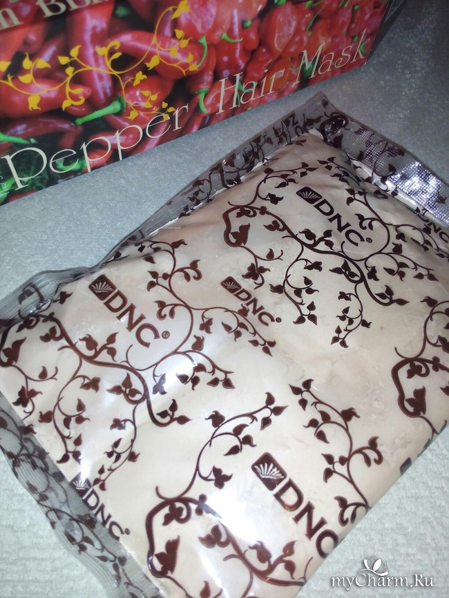 Собрала все необходимое: красный перец DNC, кипяченая вода, маска для волос, купленная в магазине, с более-менее натуральным составом, миска и ложечка для наведения смеси, и приступила к смешиванию ингредиентов. Розовый порошок смешала с водой, получилось жидковато, но после добавления маски, смесь загустела заметно. Это то, что нужно. Хочу заметить, что высыпать розовый порошок из пакетика необходимо крайне осторожно, иначе кашель вам обеспечен. Так как порошок очень легкий и разлетается в разные стороны. Вдохнув его, открывается сильный кашель. А так же не допускайте поподания порошка в глаза!!!